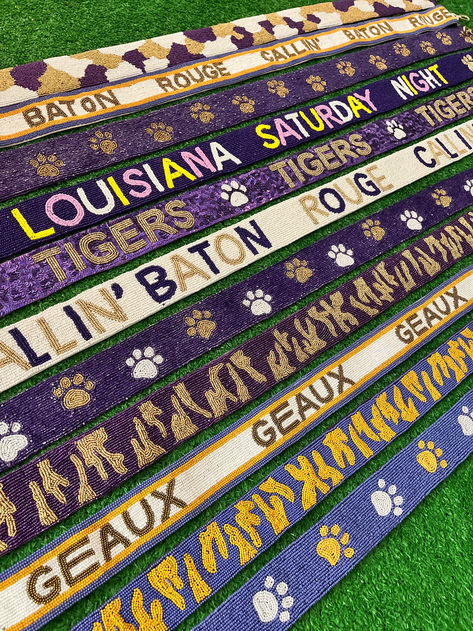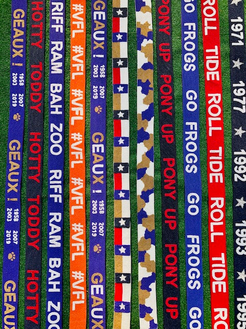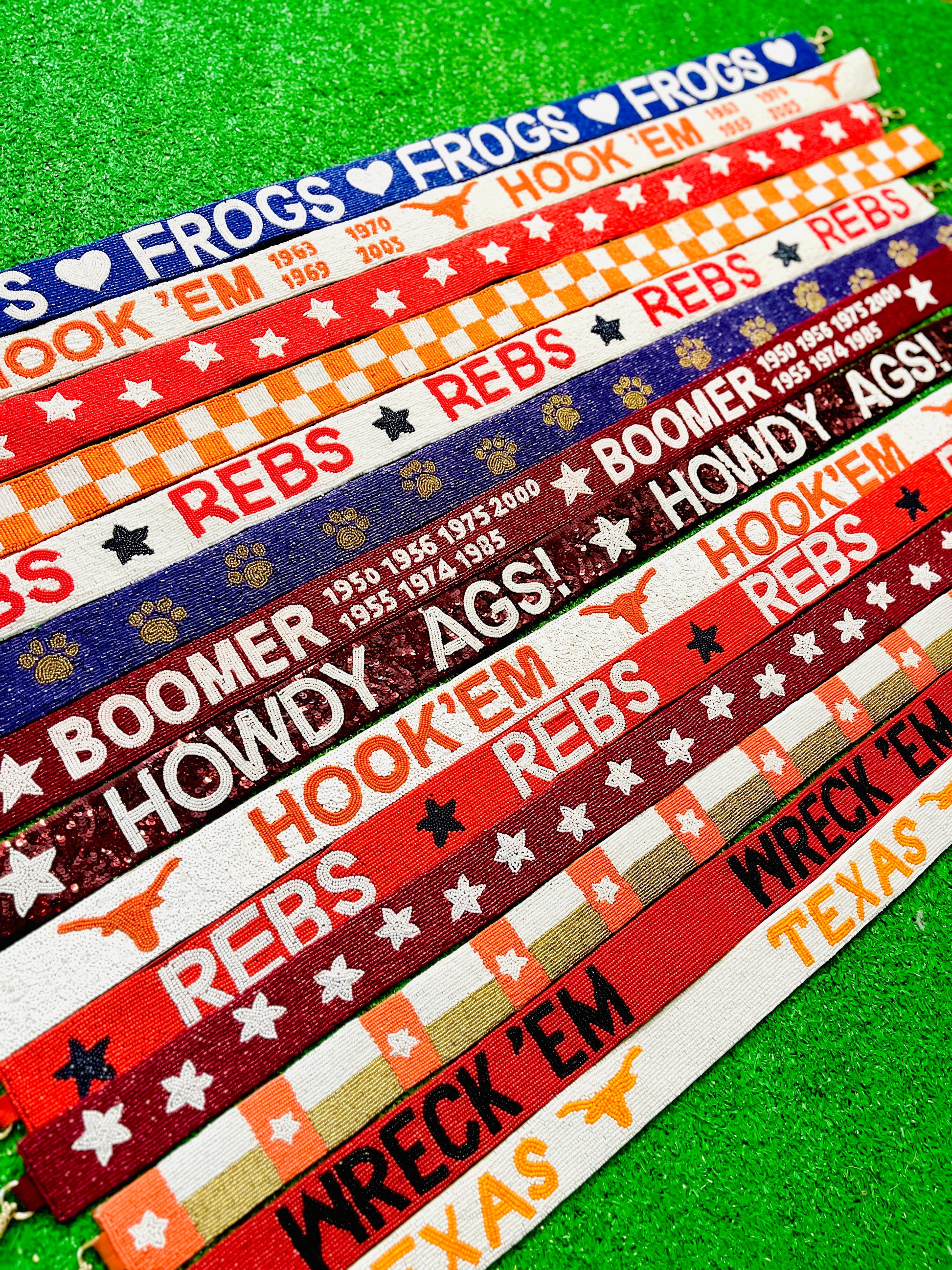 The “Geaux”, “Hook em’” and “Boomer” straps feature the years they won National titles! This spirit strap is the perfect commemorative addition to your game day attire, whether you are going to the game or just to the tailgate.