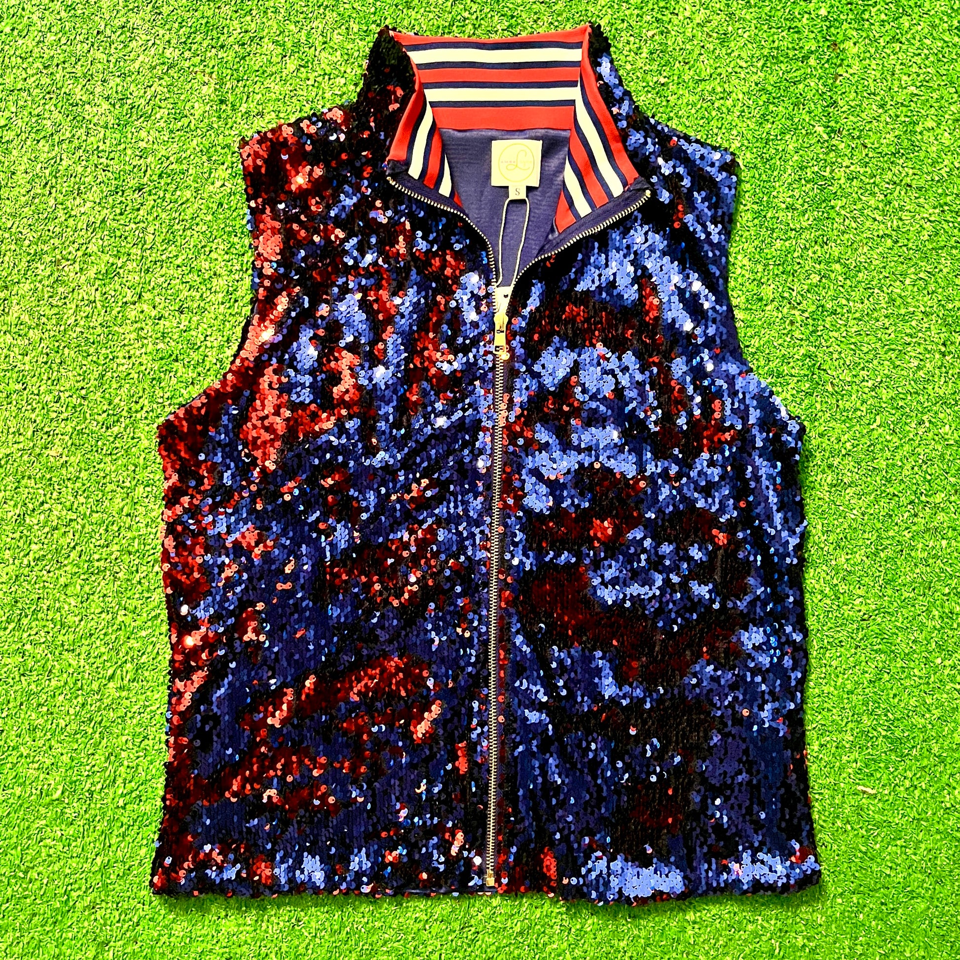 GLEAUX GIRL™ Confetti Sequin Vest / Blue+Red