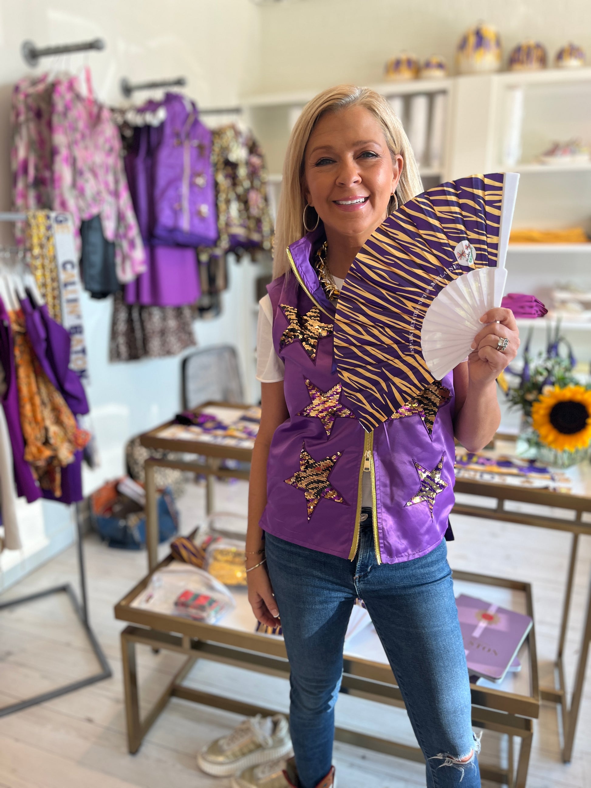 Let’s face it ya’ll, these games are HOT HOT HOT!! Gameday and ALL summer activities including festivals like Jazz Fest, French Quarter Fest need a cool way to keep cool!!! I felt it would be FUN to bring back the traditional southern fan but with some swagger!, so you can shop "THE ORIGINAL GAMEDAY SPIRIT FAN" here!! We all need it, plus it's fun to make a splash in the stadium for TV!! Pop on your party glove and let’s go!! I mean GLEAUX;)!!!