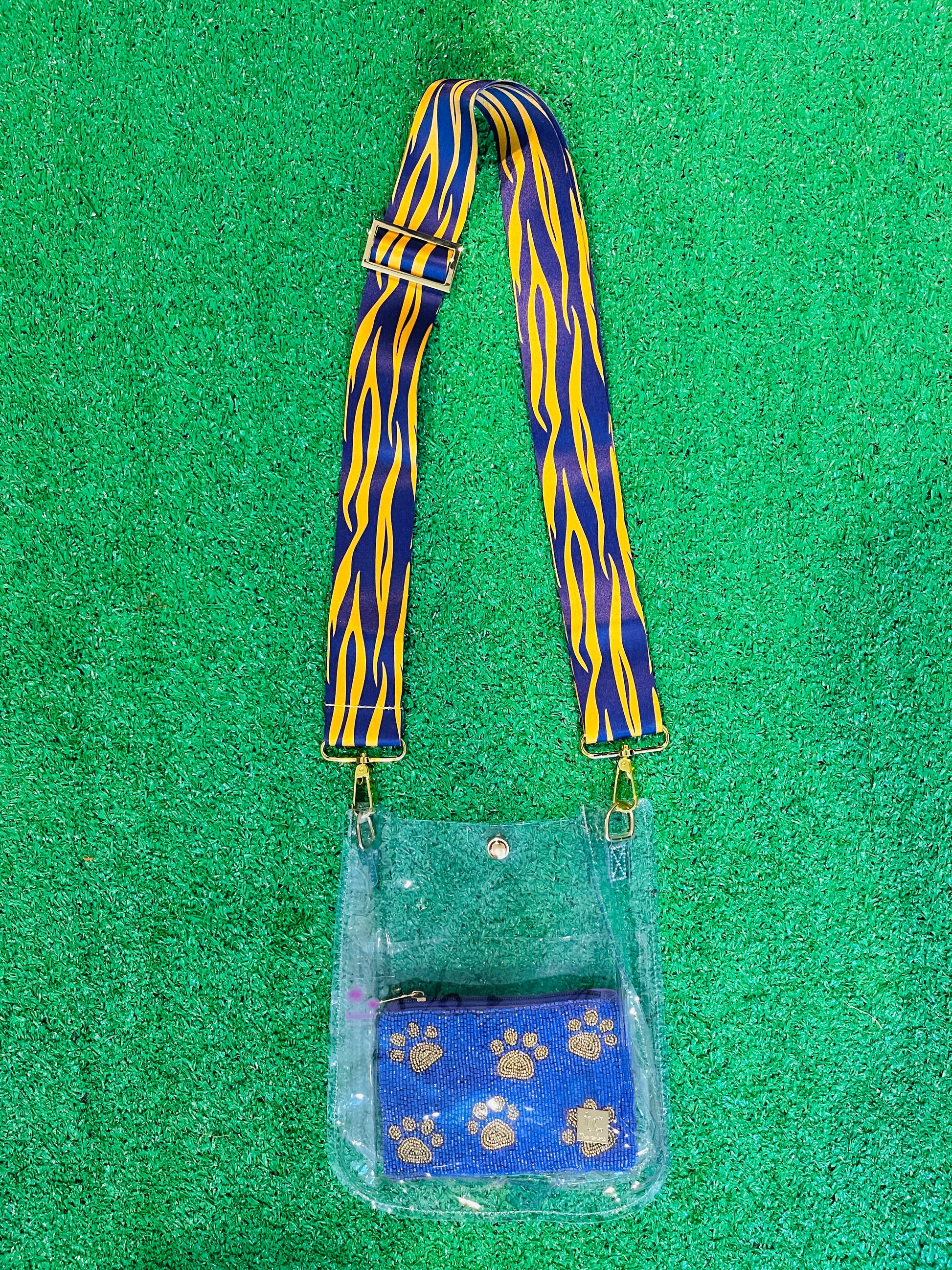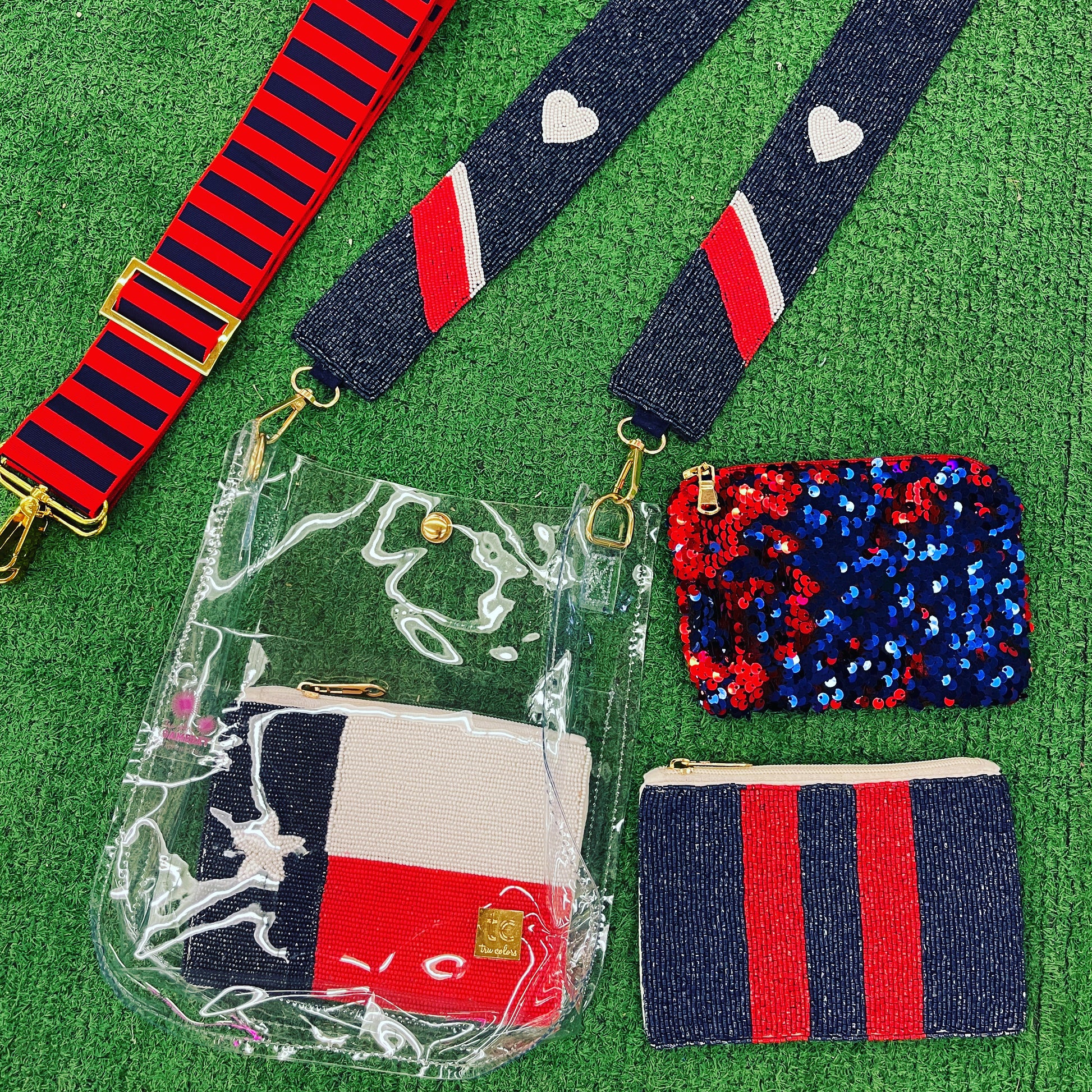 GET GAMEDAY READY WITH THE CUTEST CLEAR BAG + SPIRIT STRAP! The 2”wide spirit is the graduate of "The Original" team spirit strap. The are adjustable and monogrammable! Simply attach to your Hadley clear bag and you’re off! Just tailgating? Simply attach to the Harlie or Haylie neoprene bag for some instant team spirit for the tailgate party!